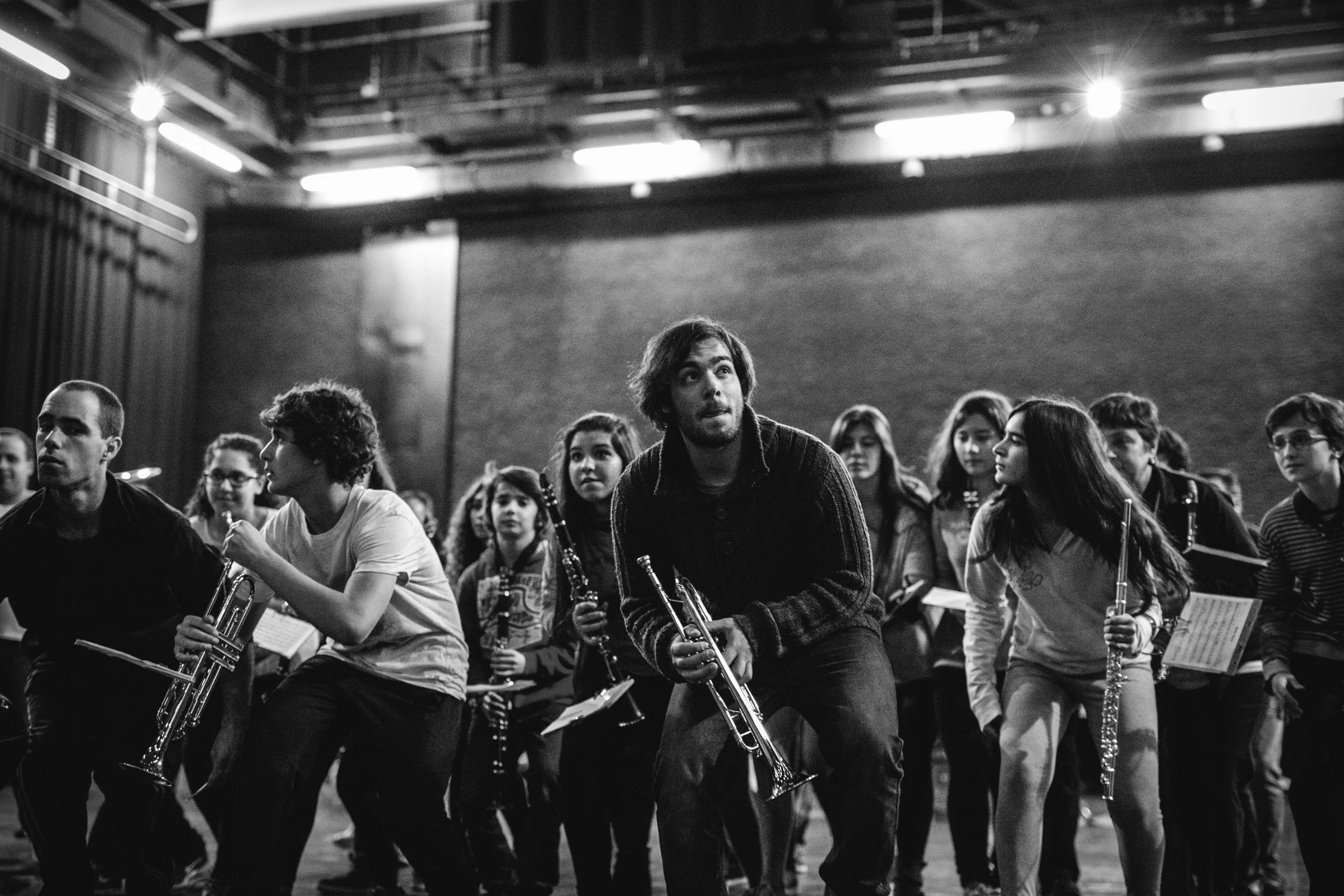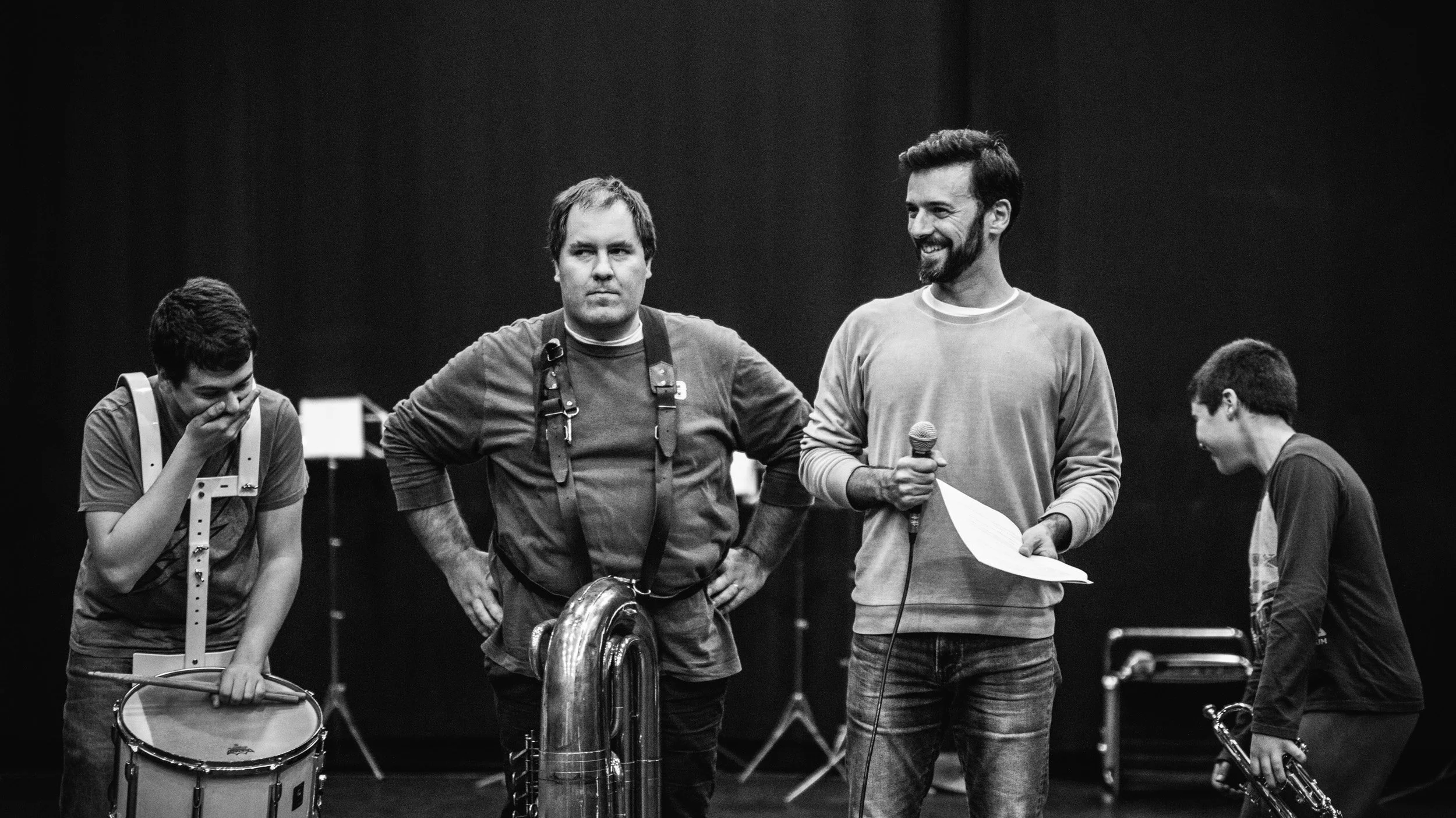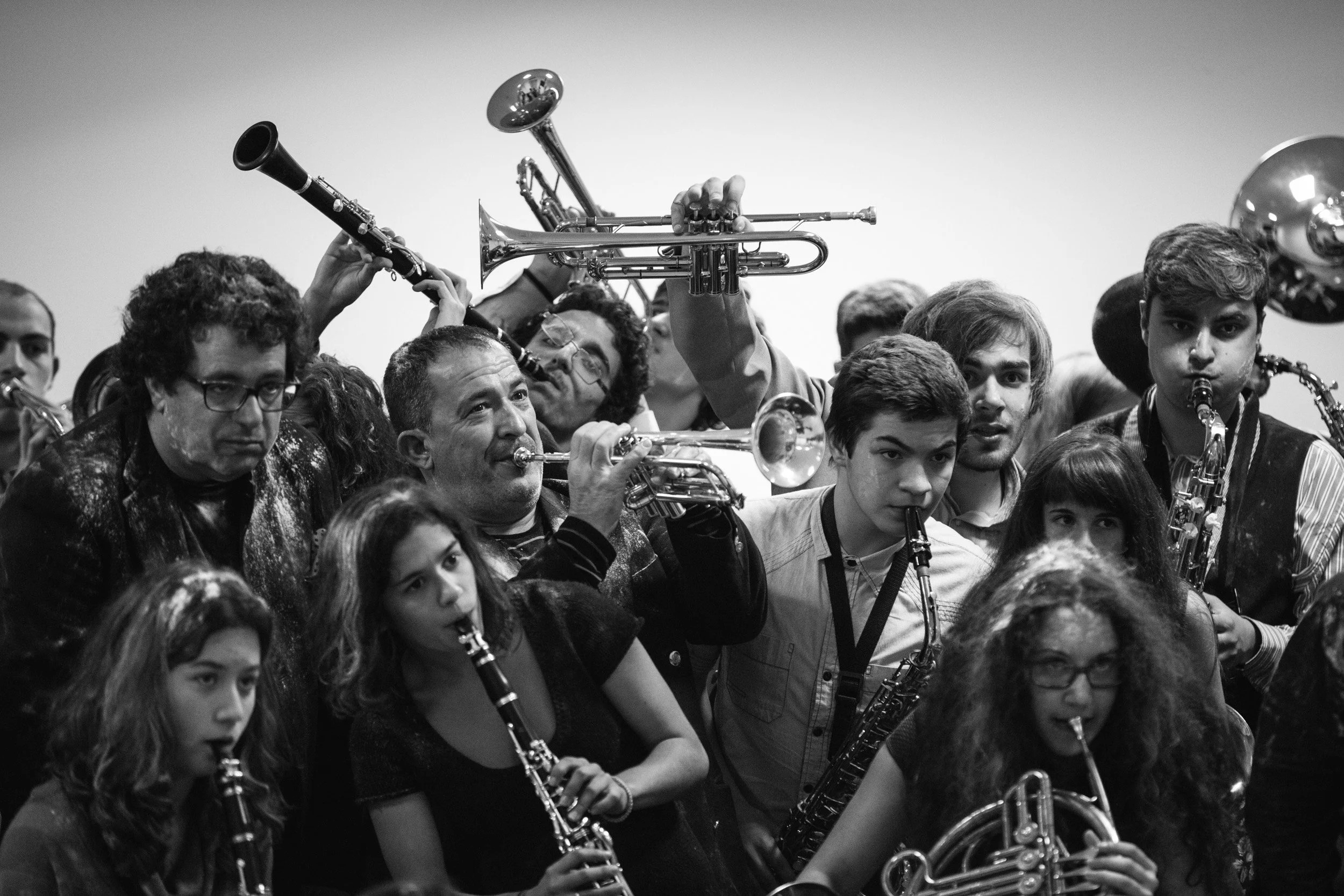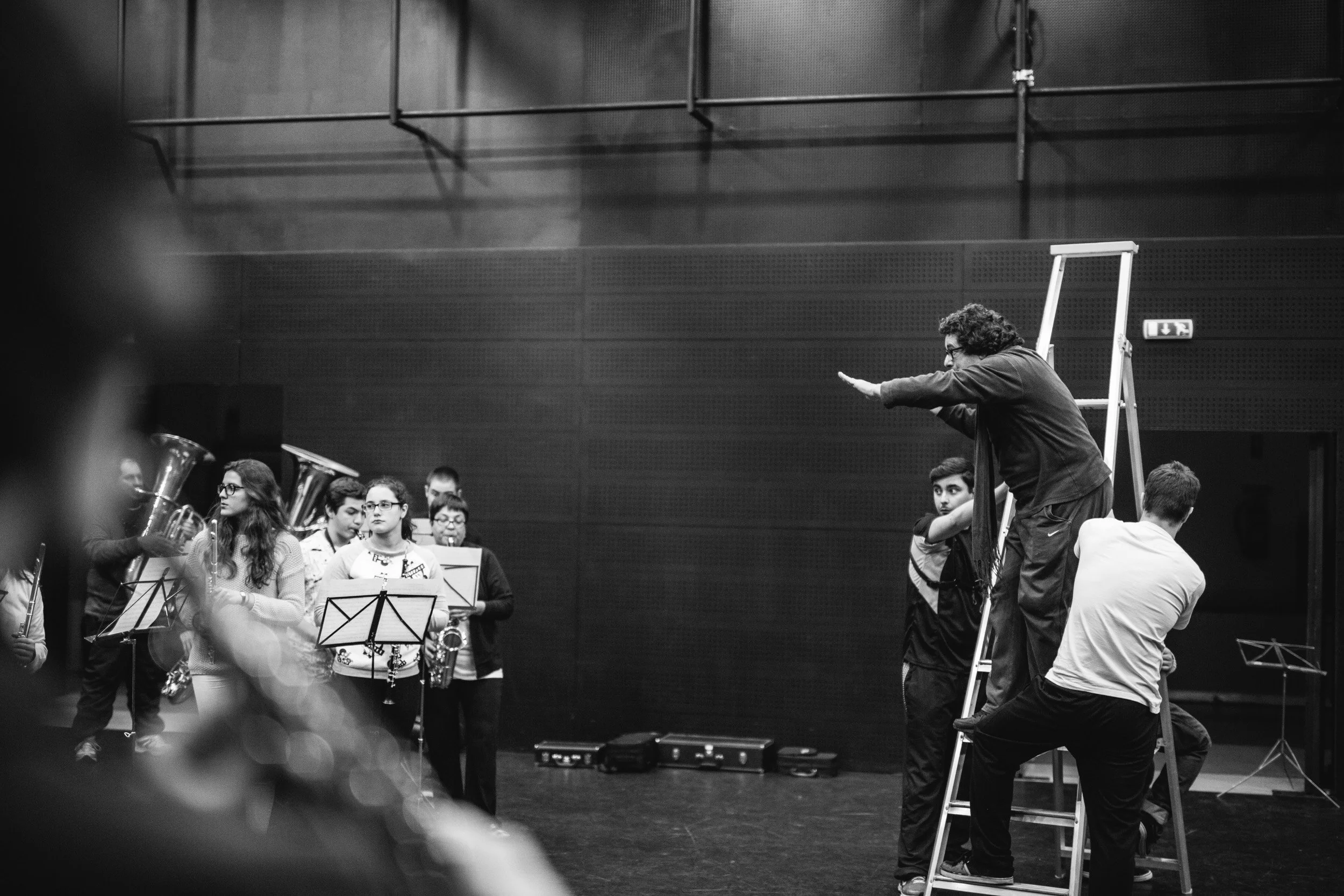 Em Janeiro de 2015 fui convidado para acompanhar uma peça que estava a ser concebida no Centro Cultural e de Congressos de Caldas da Rainha. A peça tinha o nome de Sforzando. Partia de uma ideia base concebida pela actriz e encenadora Mafalda Saloio e iria sendo construída e enriquecida ao longo do tempo nos ensaios, a partir desse esboço inicial. Na peça estaria envolvida a Banda Comércio e Indústria das Caldas da Rainha, dirigida pelo maestro Adelino Mota.